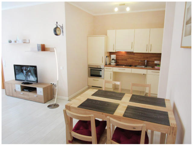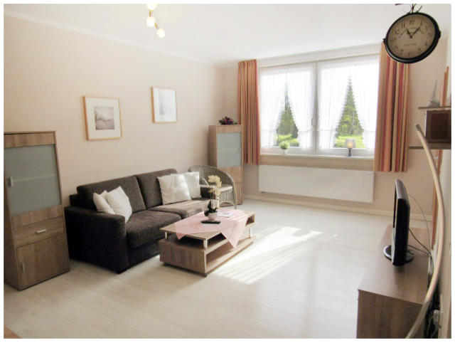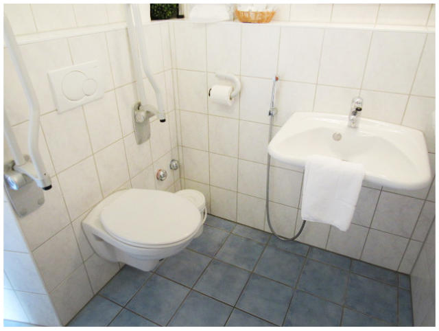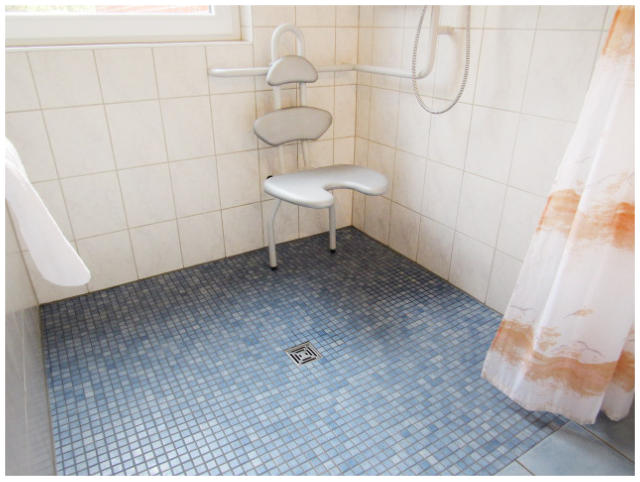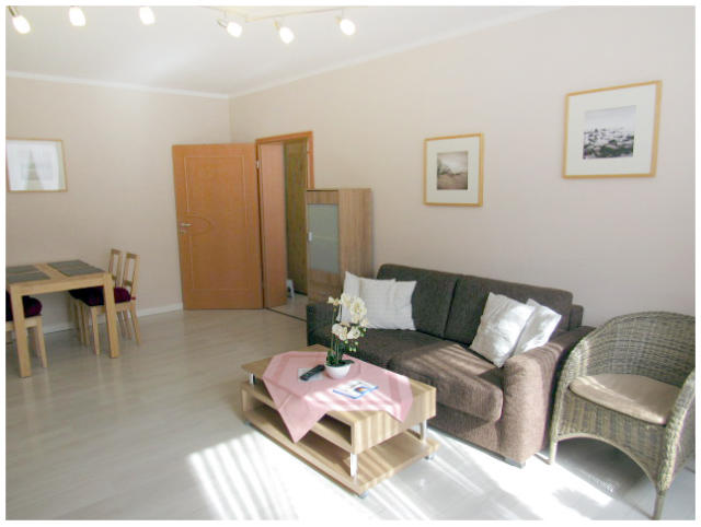 Barrierefreie Ferienwohnung 58qm²Die Ferienwohnung hat ein großes helles Wohnzimmer mit Küchenzeile, unterfahrbarem Cerankochfeld und Spüle. Geschirspüler, Kaffeemaschine, Backofen, Geschirr und Besteck.Im großen Duschbad sind alle notwendigen Haltegriffe für einen flexiblen Transfer zum Duschstuhl oder Toilette vorhanden. Der mobile Komfortduschsitz kann bei Bedarf mühelos entfernt werden.Das große Schlafzimmer ist freundlich eingerichtet und bietet sehr viel Platz auch mit großen Rollstühlen.Bettwäsche und Handtücher werden von uns kostenfrei zur Verfügung gestellt.Auch in dieser Ferienwohnung gilt unser Frühstücksservice!Tägliche Reinigung gegen Aufpreis möglich.Haustiere sind in den Ferienwohnungen nicht erlaubt!